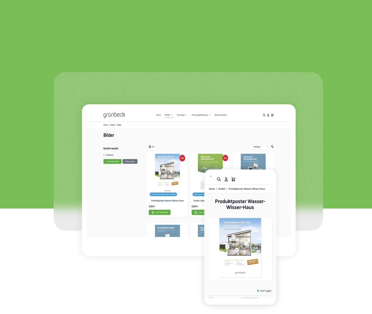 In enger Zusammenarbeit mit dem Grünbeck-Team haben wir eine performante B2B-Plattform auf Basis von Magento und dem modernen Hyvä-Frontend entwickelt. Der Shop richtet sich ausschließlich an registrierte Nutzer:innen. Viele Artikel werden bewusst ohne Preisangabe dargestellt, da der Fokus auf Information und Verfügbarkeit liegt, nicht auf direkter Bepreisung.